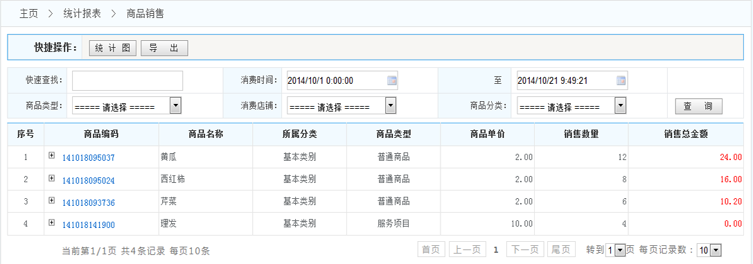 4.列表:雙擊商品編碼可以查詢商品消費(fèi)詳情